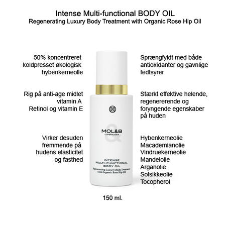 Mol&B produkterne er dermatologisk testet, fri for parabener og allergener - og er ikke testet på dyr.